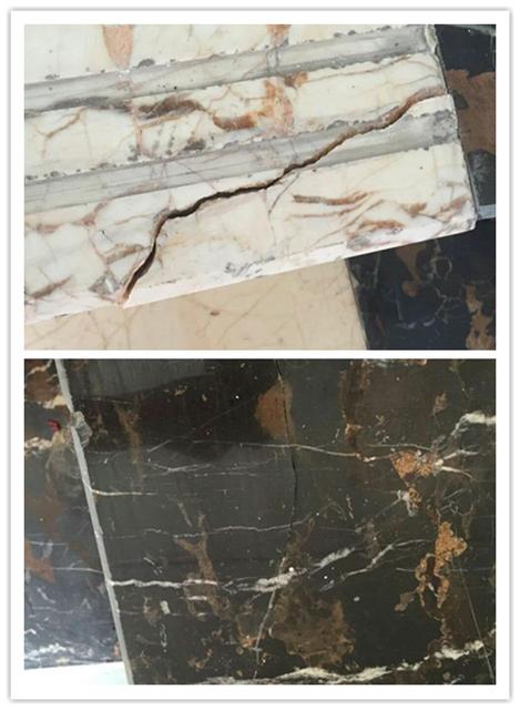 根據(jù)網(wǎng)上提供的號碼18169335841,聯(lián)系到銷售工程師謝工,告知斷裂面大需要先無水清理干凈斷面,再調(diào)和石粉補強固定住后再灌膠到裂縫內(nèi),等固化后再打磨,裂縫小則直接用膠灌注表面等膠慢慢滲入。于是訂購一組按說明操作,哎!還別說,效果還真的好。不僅大理石斷裂處全部修補好了,連之前一些小的裂縫也都填補齊了,打磨后還非常牢固。 SL3218透明裂縫修補膠除了用在大理石裂縫修補外還可以用于其他玻璃、木材、陶瓷等的裂縫及斷裂面修補