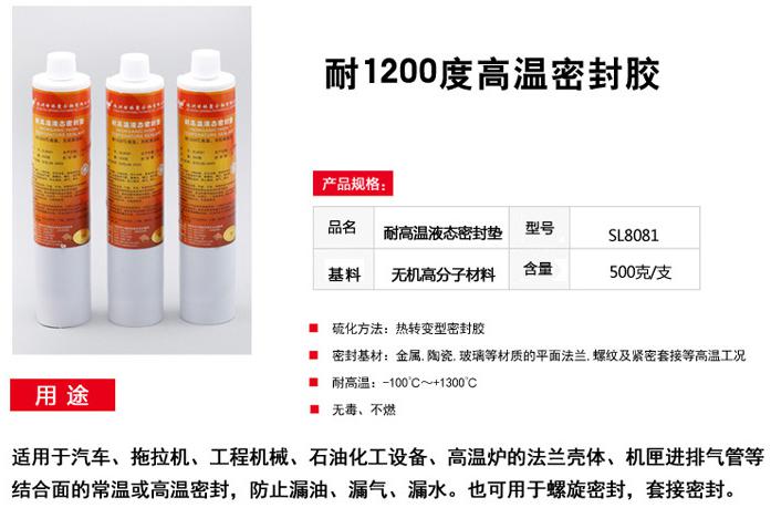 大家都知道高溫爐的法蘭殼體、閥門、機(jī)匣進(jìn)排氣管、管螺紋接頭等結(jié)合面,以及一些耐高溫的螺紋及銷釘都需要用的耐高溫的密封膠。那市面上這么多高溫膠,高溫密封膠用什么好呢?株洲世林聚合物有限公司有一款SL8081高溫密封墊(密封膠)其工作溫度從-100℃~+1200℃,短時能耐+1300℃。其性能與英SQ2高溫密封劑相當(dāng)。它具有優(yōu)異的耐超高溫、阻燃、耐老化、耐酸堿等性能;滿足一般膠粘劑無法解決的高溫設(shè)備的密封、填補(bǔ)、灌封、修補(bǔ)和粘接等難題。